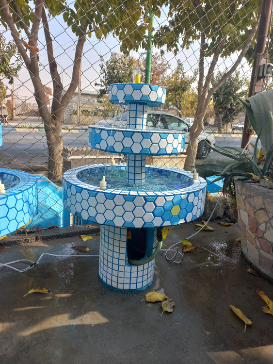 آبنما سه طبقه با سه عدد نازل آب پاش بدون نیاز به منبع آب خارجی و قابلیت اتصال چراغ های رنگی